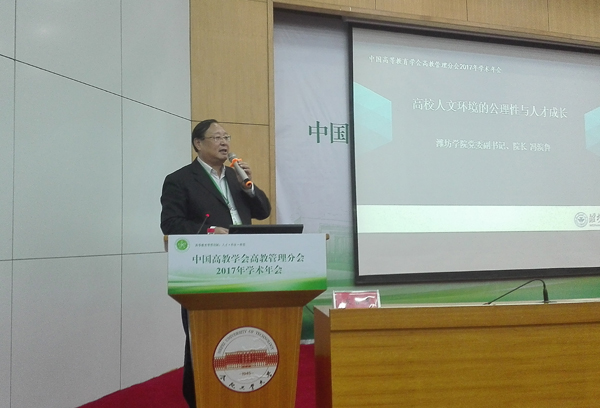 作为中国高教学会高教管理分会常务理事,校长冯滨鲁应邀出席会议并在大会上作题为《高校人文环境的公理性与人才成长》的报告。冯滨鲁首先介绍了我校学习贯彻十九大精神、落实立德树人根本任务、深化综合改革、实施内涵式发展的基本情况。冯滨鲁认为,在中国特色社会主义新时代,随着社会主要矛盾的转化,研究教育领域不平衡不充分的主要表现形式,抓住主要矛盾,是教育界落实十九大精神的重要任务;要正确面对高等教育领域普遍存在的不平衡不充分的问题,特别是高校内包括大学制度、教育观念、价值取向、人际关系等在内的人才与人文环境不平衡不充分的问题,采取积极有效措施,加强针对性的建设。