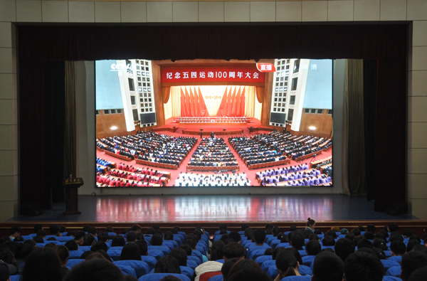 本网讯 4月30日,纪念五四运动100周年大会在人民大会堂举行,中共中央总书记、国家主席、中央军委主席习近平出席会议并发表重要讲话。学校团委组织各学院团总支和团员青年代表在图书馆报告厅集中收看大会盛况,及时认真学习领会会议精神和习近平总书记重要讲话精神,畅谈感想和认识。