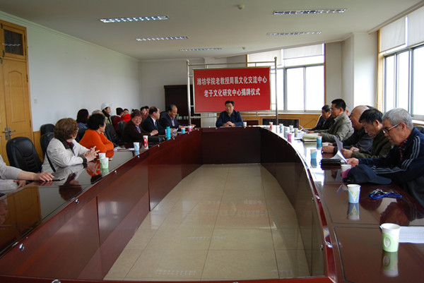 本网讯 4月30日,“潍坊学院老教授国学研究基地·周易文化交流中心、老子文化研究中心”,以及“潍坊学院老干部象棋协会、钓鱼协会、台球协会、扑克协会”揭牌仪式在学校行政楼五楼东会议室举行。学校党委副书记王清明分别与各中心、协会负责人揭牌,学校离退休工作处负责同志主持仪式。