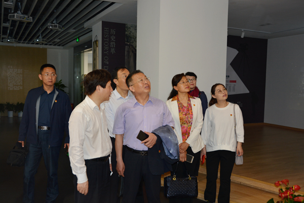 在浙江传媒学院,学习组先后与该校党委组织部、设计艺术学院、电视艺术学院、电子信息学院、动画学院、音乐学院负责同志进行了交流。几个学院依托丰富的党建文化平台与影视传媒、文化创意、专业资源,开展《红船往事》创作演出,打造党建特色品牌“移动三脚架志愿服务队”“乐动的党旗”五部曲、“党建+影视文化”教育实践工作模式,实现了党建与专业的深度融合。学习组一行还参观了浙江传媒学院校史馆和全媒体中心,考察校园文化和党建阵地建设,并就党建统领、思政领航,大力弘扬红船精神的探索实践进行了交流。