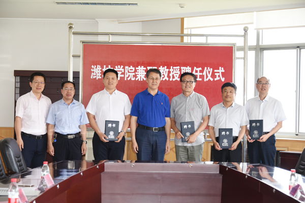 仪式上,赵光强向4位专家介绍了我校的发展历史,特别是近几年学校产学研合作情况。他指出,学校坚持产学研相结合,在致力于提高教育教学质量的同时,积极发挥科学研究和服务社会的办学功能,大力推进新旧动能转换和服务潍坊行动计划。学校紧紧围绕机电、信息、化工、设施农业、生物医药、旅游开发等地方支柱产业开展科研攻关,提供科技服务,努力为地方经济社会发展做出积极贡献。