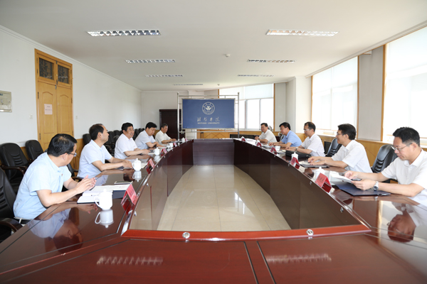 本网讯 7月1日,济宁医学院党委书记高哲学、副院长兰迎春一行5人来我校交流工作。两校围绕党建、宣传思想、意识形态工作等内容进行了座谈。校党委书记孙文亮,党委副书记王清明出席座谈会。