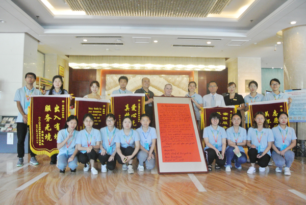 经过紧张有序的培训之后,我校全体志愿者立即充实到交通服务组、报到组和文化活动组,以忘我无私的奉献精神,保证了大赛的顺利进行。期间,志愿者除了提供语言沟通方面服务,还要协助完成接送站、注册、收费、安保、文化宣传、外宾临时出行等繁琐任务,全体师生轻伤不下火线,经受了精神和体力的严峻考验。其中,文字材料的翻译尤具挑战性。除了工作手册、领导致辞、嘉宾讲话、文化宣传等材料的翻译,教师志愿者还承担了随时下发的紧急通知,他们不分昼夜,随时待命,第一时间高质量完成相关材料的翻译工作。参赛选手及家长把志愿者的每一份付出都看在眼里,纷纷以感谢信、蛋糕等形式表达他们的感动与谢意。