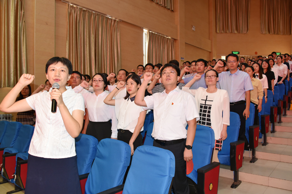 本网讯 9月10日,在第35个教师节到来之际,我校在图书馆报告厅举行2019年教师节庆祝大会,表彰2019年以来获得市级以上荣誉称号教师,为37名荣休教师颁发纪念品,94名新进教师举行庄严的入职宣誓。党委书记孙文亮出席大会并讲话,大会由校长冯滨鲁主持。学校领导王清明、丁子信、马茜华、朱猷武、赵光强、王旭升、王建新出席大会。