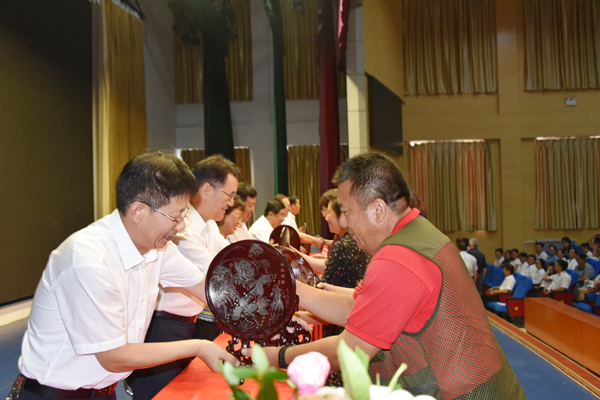 大会对2019年获得市级以上荣誉称号的教师进行了表彰。为37名退休教职工颁发了纪念品。