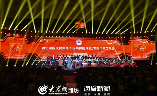 9月27日晚,潍坊学院庆祝新中国成立70周年文艺晚会在学校体育馆举行。潍坊学院领导孙文亮、冯滨鲁、王清明、丁子信、马茜华、朱猷武、赵光强、王旭升,市委教育工委副书记、市教育局二级调研员李广敬与6000余名师生及军训团官兵一起观看晚会,共同回顾70年来新中国的建设成就,祝愿伟大的祖国繁荣昌盛。