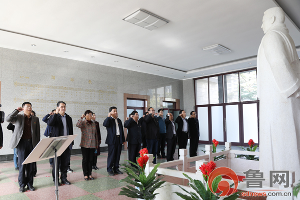 在王尽美纪念馆,孙文亮带领中心组成员面向王尽美塑像,鞠躬致敬,表达对革命先烈的深切怀念和崇高敬意;重温入党誓词,铭记初心使命。纪念馆共设四个展厅,分别陈列烈士革命斗争的史料、图片、遗物,部分党和国家领导人的题词,以及关于烈士的回忆文章与文艺作品等。王尽美同志在党的创建和早期革命活动中,做出了卓越贡献,他用短暂而又辉煌的一生诠释了革命大无畏精神和爱国主义精神。