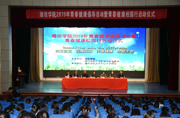 本网讯 11月8日,学校在图书馆报告厅举办2019年青春健康倡导活动暨青春健康校园行启动仪式。副校长马茜华、济南疾控中心结核病防治所所长王美花教授、潍坊市计生协和高新区卫计局相关领导出席,学生处、团委、校医院相关负责同志、新入职女职工和2019级女生代表参加启动仪式。