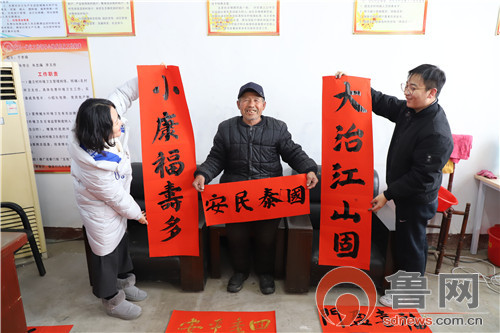 据了解,本次活动共为四个村的困难党员、困难群众、五保户书写春联近400副,既为即将来临的春节增添了浓浓的喜庆气氛,也将党的十九大精神、扶贫政策、中华传统文化送到群众家中,让他们感受党的温暖,沐浴新时代的春风。