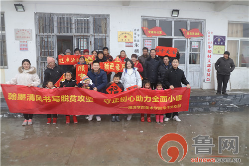 鲁网1月11日讯 农历庚子年来临之际,伴随着冬雪,沐浴着冬韵,1月7日至9日,潍坊学院美术学院学生党支部组织师生党员一行9人赴聊城市茌平区对接学校驻村第一书记,开展“翰墨清风书写乡村振兴 守正初心助力全面小康”主题活动,写春联迎新春,送文化助脱贫。