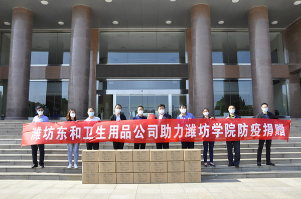 本网讯 为助力复学复课,5月20日,潍坊东和卫生用品有限公司向潍坊学院捐赠一次性使用无纺布口罩2万只,学校党委副书记王清明代表学校接受了捐赠并表示感谢。企业负责人表示,愿以实际行动为师生的身体健康和生命护航尽绵薄之力。