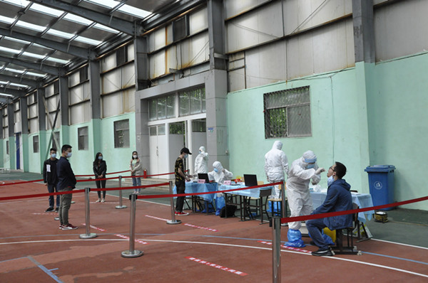 登记后,学生乘坐汽车到达核酸检测处作检测,之后送回各自宿舍,等待检测结果。进入宿舍前进行体温测量、健康码确认、信息登记,并发放消毒物品、防控知识培训材料。在等待检测结果期间,饮食由总务处统一供应,由辅导员将餐食送到各个学生宿舍。