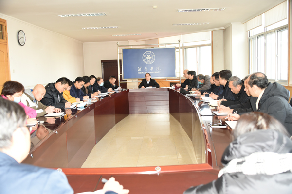 本网讯 1月5日,学校组织召开期末教学工作会,副校长丁子信主持会议并讲话,教务处班子成员及科室负责人和各学院分管领导参加会议。