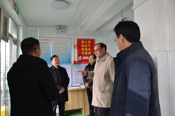 在一号、五号学生公寓,李东、冯滨鲁慰问值班人员,到学生宿舍查看各种设施的寒假情况,了解学生公寓的日常工作。在留学生公寓,李东、冯滨鲁详细询问留学生假期在校的人数、假期生活安排等情况。