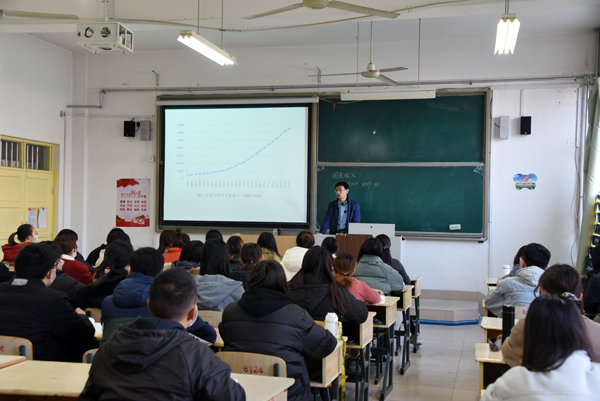 本网讯 3月4日上午,校长冯滨鲁在教务处有关同志的陪同下,到数学与信息科学学院随堂听取了朱志远博士讲授的《宏观经济学》课程。数学与信息科学学院有关负责同志参加了听课活动。