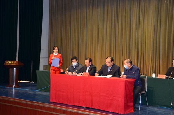 校党委书记李东出席大会并讲话、校长冯滨鲁代表我校与高新区公安分局王若水局长签署校警共建协议书,党委副书记王清明主持大会、副校长王旭升作了校园安全稳定工作报告,回顾总结2020年工作,安排部署2021年任务。