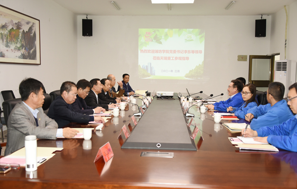 本网讯 3月24日,为深化校企合作,加快推进产业学院建设,学校党委书记李东、副校长丁子信带领相关部门和单位负责同志,到山东天瑞重工有限公司考察座谈。天瑞重工董事长李永胜院士陪同参观并参加座谈交流。