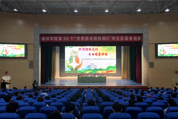 本网讯 3月24日是第26个“世界防治结核病日”,为巩固我校结核病防控工作成果,坚决遏制校园结核病传播,切实保障广大师生健康,我校开展以“终结结核流行 自由健康呼吸”为主题的系列宣传活动。24日下午在图书馆报告厅举办宣传活动启动仪式,副校长马茜华作动员讲话,校医院负责人主持仪式。学生工作处、团委负责同志参加了启动仪式。