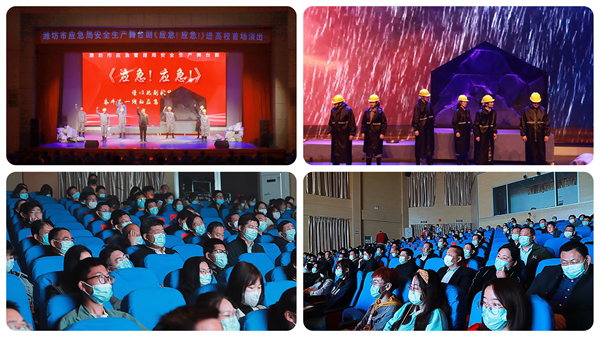 演出现场,时时爆出热烈掌声,现场观众热血沸腾,感慨无限。胡永志的饰演者对这个角色有着更深入的认识,他说:“胡永志就是应急安全管理者的缩影,因为疏忽和马虎,他承受了生离死别和家庭的破碎,这也更加笃定了他对安全生产绝不可大意的认知。这次在潍坊学院演出,比起传递更多的安全知识,更重要的目的是加强加深师生对安全的认识,安全问题无小事,处处都要敲响安全的警钟。”文学与新闻传播学院刘文丽同学感触颇深,“虽然老师经常给我们讲‘安全问题无小事’,但是平时也就是多注意一下,譬如校内外交通安全、宿舍安全、实验室安全、网络安全、校园文化活动安全等,但是没有真正入脑入心、触动心灵,今天观看了《应急!应急!》,让我对‘安全’的认识更加直观、更加深刻,我以后也要在同学们中多宣传,我们大家一定要时刻绷紧‘安全’这根弦!”
