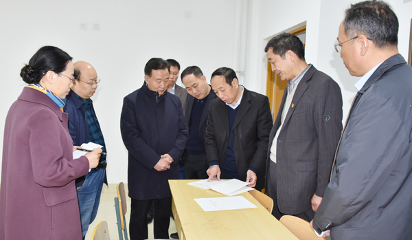 在学校办公室、教务处、教师教育学院、安顺校区管理办公室、数学与信息科学学院负责同志以及相关同志的陪同下,李东一行先后到声像媒体实验室、心理测量与统计实验室、科学探索综合实训室、微课创作室、书画技能实训室,以及艺术楼、教学楼、图书馆等场地,进行了检查指导。每到一处,李东都认真听取相关负责人的准备情况汇报,并就材料准备、考查路线、环境美化、氛围营造、宣传展示、人员组织、条件保障等方面工作,针对性地提出改进建议。