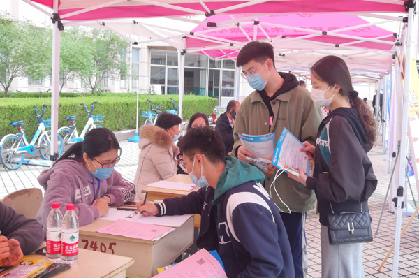 由数学与信息科学学院承办的潍城区、安丘市人社局专场校园双选会在人合楼举行。本场双选会,共有109家用人单位参加,提供了800余个就业岗位,涉及市场营销、化工、机械、环保、法律、计算机、教育等多个行业。在招聘会现场,丁子信向用人单位详细了解用人需求及招聘情况,并强调大学生是优质的就业资源,促进大学生就业是全社会共同的责任。前来求职的毕业生们也就岗位要求、薪资待遇、个人发展、职业前景等实际问题与参会单位进行了深入的交流,通过现场沟通,毕业生与用人单位初步达成就业意向500余人次。此次双选会也吸引了部分低年级学生参与,使他们提前了解就业形势以及所学专业的就业需求情况,提前积累求职经验。