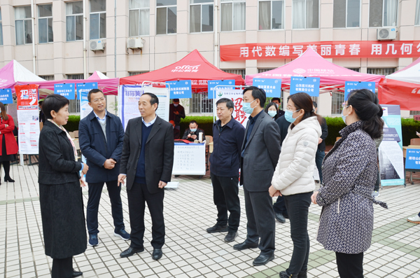 由传媒学院承办的“2021年潍坊高新区教育培训机构专场招聘会”在天一楼举行。本场招聘会共有82家教育培训机构来校争相揽才,为我校毕业生们提供学前教育、文化传媒、文娱艺术、教育咨询、信息技术等多个优质岗位。招聘会期间,丁子信与用人单位代表和毕业生们面对面交谈,了解毕业生们的就业意向和各用人单位的发展前景、招聘需求及未来几年的人才储备计划。