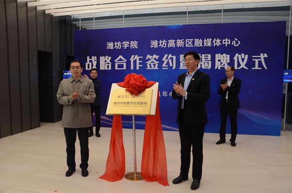 我校与潍坊高新区融媒体中心合作共建实习实训基地,将本着“优势互补、互惠互利、相互促进、共同发展”的宗旨,在党的建设、实践教学、岗位实习、双师培训、创新创业及工作项目合作等方面建立长期战略合作关系,在互惠互利的基础上,加强资源优势互补和共同高质量发展。