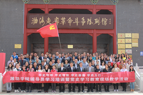 上午,辅导员们来到昌邑市龙池抗日战争纪念馆,瞻仰烈士祠,缅怀抗日战争中牺牲的革命先烈。山东省优秀共产党员、烈士祠守护人魏铁良同志向大家介绍了烈士祠建立的背景,讲述了抗日战争时期昌潍大地上抗日军民英勇顽强的革命斗争和革命先烈的英雄事迹,大家认真聆听、深受感动。讲解结束后,全体人员在烈士祠前深鞠三躬,对革命先烈致以崇高的敬意。接下来,大家来到渤海走廊革命斗争陈列馆参观学习。陈列馆以“渤海走廊”革命斗争史为主线,根据有关历史照片、文献资料、老人口述回忆等相关资料,综合运用多种形式集中再现了昌邑、潍县、寿光北部地区军民为保卫“渤海走廊”所进行的伟大斗争。在抗日战争时期,英雄的党政军民坚定信仰、胸怀理想,万众一心、众志成城,不怕牺牲、勇于担当,用鲜血和生命保证了“渤海走廊”的安全畅通,谱写了撼天动地、气壮山河的壮丽史诗。参观结束后,大家集体观看了《寸心常念兴华——记“发射将军”李福泽》纪录片,共同缅怀把事业写在戈壁滩上的潍坊籍开国少将李福泽。在陈列馆外,大家面向鲜红的党旗,重温了入党誓词。