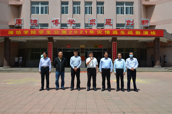 本网讯 为提高我校大学生防灾避险安全意识,进一步提高大学生灾情自救能力,我校于5月25、26日进行学生公寓2021年灾情逃生疏散演练。学校党委副书记王清明宣布演练开始。学生工作处、保卫处等相关部门负责人、部分二级学院分管学生工作负责人和辅导员,以及公寓管理服务中心全体老师参加活动。本次活动由学生工作处、保卫处联合主办,各二级学院、公寓管理服务中心、多邦物业和大学生自律委员会承办,为潍坊学院第十一届大学生宿舍文化节的重要活动之一。主校区学生公寓全体在校学生参加本次演练。