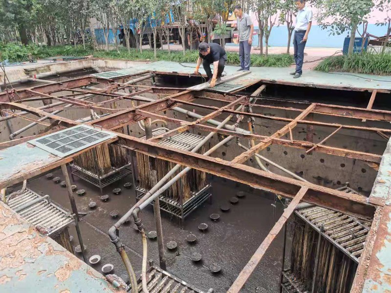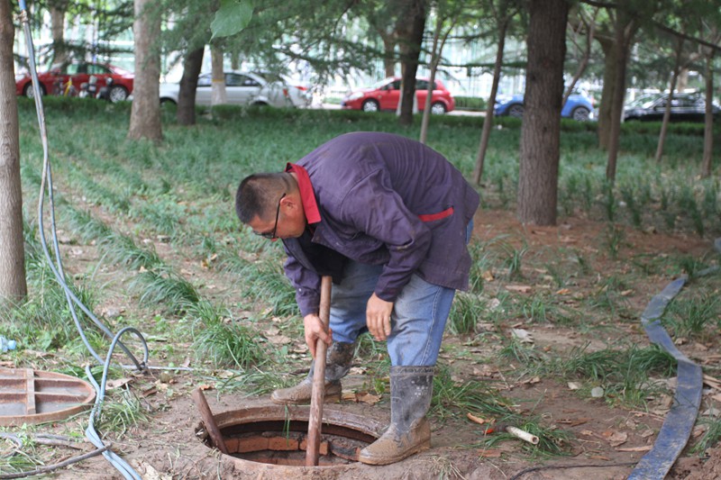 受台风影响,潍坊近日时常阴雨绵绵。7月28日上午,记者跟随总务处张东国科长来到宏泰物业工人施工场地。工人们正在为裸露的土地铺设草皮和种草,不知是雨水还是汗水所致,他们的衣衫早已湿透。“做好校园绿化美化,主要是为了优化工作与学习环境,增强师生的幸福感。同时也为70周年校庆营造出生机勃勃的氛围。之前我们刚刚完成了对‘世纪风’雕塑的翻新维护。”张科长说道。步履不停,我们冒着霏霏小雨来到了中水厂的作业现场。中水厂是潍院节水校园建设的标杆之作, 8月底之前要完成对中水厂的升级改造,包括更替原来由铁板组成的防水盖为混凝土材质的防水盖;过滤系统加以升级,使废水可以得到更进一步的利用等。天空还飘着细雨,张科长在群内接到消息:6号楼自来水管爆裂。连忙赶到现场察看,只见工人们正努力抢修。“这个操作起来也不难,就是麻烦点儿,要把这些水先提出来,然后才能进行水管的修缮。”穿着深深的雨鞋的工人告诉记者。