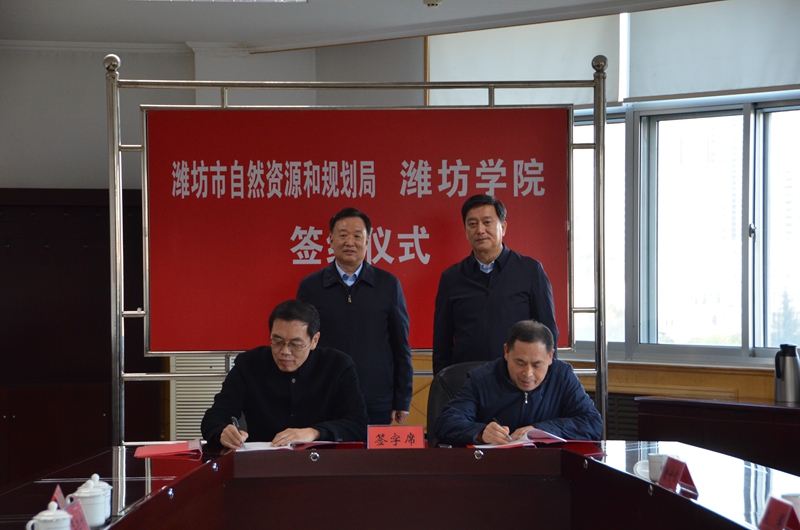 本网讯 10月20日,学校举行与潍坊市自然资源和规划局合作框架协议签约仪式。党委书记李东、副校长王旭升,潍坊市自然资源和规划局局长刘建成、二级调研员温少波出席仪式。副校长王旭升主持签约仪式。