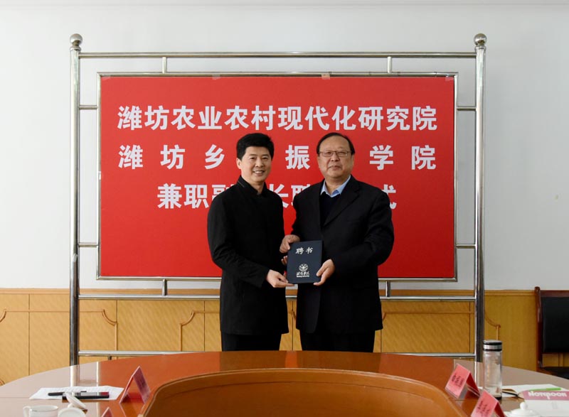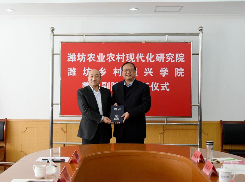 本次聘任的两位兼职副院长是我国农业农村现代化研究和服务乡村振兴的先行者和行业领军人物,分别在潍坊农业农村现代化指标体系研究、山东乡村振兴服务联盟、山东农业产业规划、国家农业开放发展综合实验区建设等领域,对潍坊乡村振兴事业做出了突出贡献。李继凯和冯海强在致辞时表示,一定进一步加强合作,不负重托,为推动潍坊乃至全国农业农村现代和乡村振兴做出新的更大贡献。