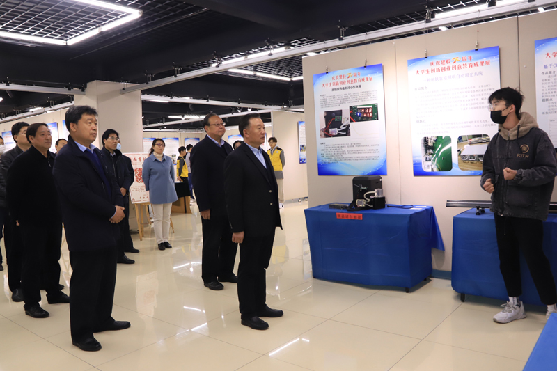 本网讯 11月11日,学校党委书记李东,校长冯滨鲁,党委副书记王清明到大学生创业孵化基地参观“庆祝建校70周年,争做新时代追梦人”大学生创新创业创意教育成果展。办公室、科研处、教务处、团委、学生工作处相关负责同志陪同参观。