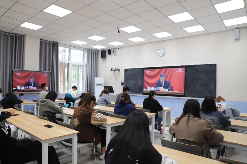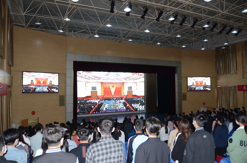 学校党委书记李东,党委副书记、校长冯滨鲁,党委副书记王清明,党委委员王旭升、王建新、李连成、单振涛与学校团员青年代表230余人在图书馆报告厅集体收看大会直播,学校广大师生通过电视、网络、手机等收听收看大会直播,认真聆听习近平总书记重要讲话。习近平总书记的重要讲话在全校师生中引发热烈反响。