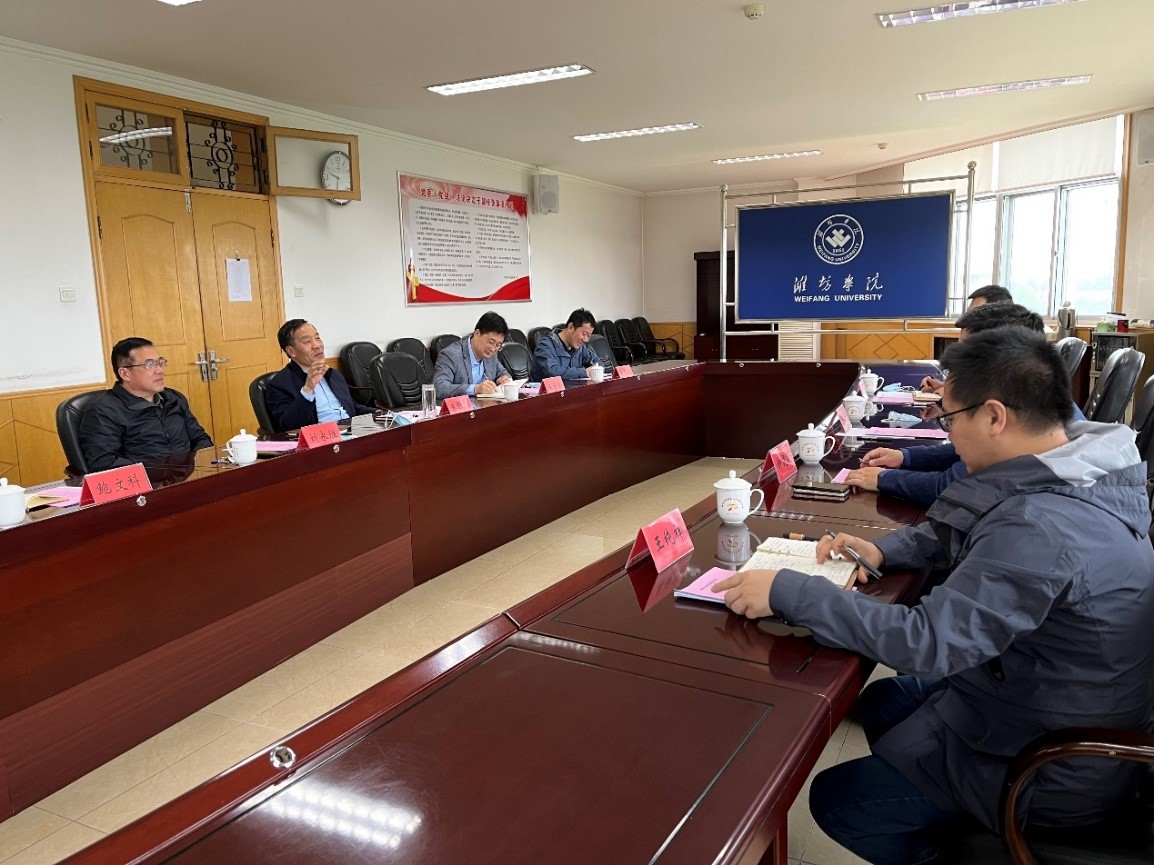 本网讯 5月10日,为促进校企深度合作,推动潍柴产业学院建设发展,副校长朱猷武主持召开了潍柴产业学院建设工作校企洽谈会。潍柴集团党委委员、工会主席兼潍柴职业大学校长鲁文武一行4人受邀参加,潍坊学院教务处、机械与自动化学院(潍柴产业学院)相关部门负责人及部分教师代表参加了会议。