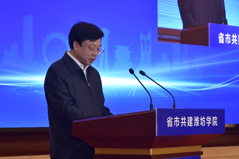 省委教育工委副书记、省教育厅党组副书记、副厅长(正厅级)冯继康,潍坊市委书记田庆盈出席仪式并讲话。市委副书记、市长刘运主持仪式。省委教育工委副书记、省教育厅党组副书记、副厅长白皓,潍坊市人民政府副市长陈端梅代表双方签署共建潍坊学院合作备忘录。潍坊学院党委书记李东出席并致辞,潍坊学院党委副书记、校长冯滨鲁以及省教育厅、潍坊市委、市政府和潍坊学院有关负责同志出席仪式。