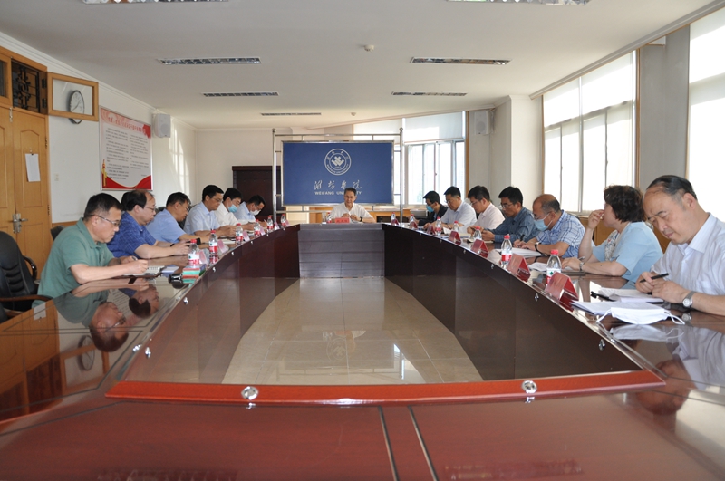 本网讯 为推进省市共建潍坊学院重点任务落地落实,5月26日,学校在行政楼五楼东会议室召开省市共建潍坊学院重点任务专班推进会。副校长赵光强主持会议并讲话。创建硕士学位授予单位工作专班,高层次科研平台创建、校企联合研发与成果转移转化工作专班,深化校地人才共享工作专班等3个专班的相关职能部门,二级学院主要负责人参加会议。