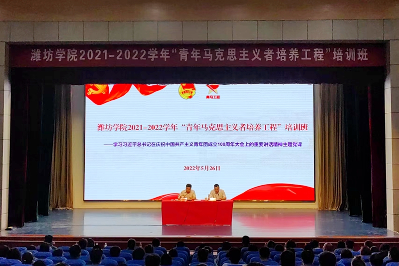 本网讯 为深入学习宣传贯彻习近平总书记在庆祝中国共产主义青年团成立100周年大会上的重要讲话精神,5月26日晚,学校举办2021—2022学年“青年马克思主义者培养工程”培训班主题党课,邀请学校党委副书记王清明担任主讲嘉宾,全校专职团干部现场聆听,234名“青马班”学员参加了培训。