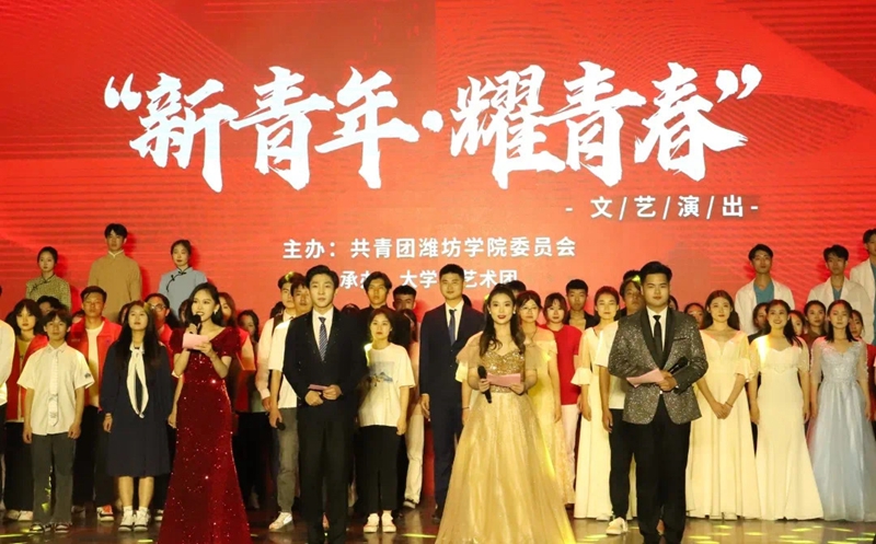 本网讯 5月27日晚,红动潍院“新青年·耀青春”文艺演出在图书馆报告厅举行,校党委委员、宣传部长单振涛和全校专职团干部、青年学生代表200余人一起现场观看,3000余人通过学校抖音和微信视频号同步直播实时观看。本次演出由校团委主办,大学生艺术团承办,是大学生科技文化艺术节的一项重要活动,全场演出紧扣“新青年·耀青春”的主题,有饱含深情的朗诵、青春激扬的舞蹈,也有激情四溢的热血歌唱,为观众奉上一场视觉与听觉盛宴,把思想政治教育融入舞台,用艺术熏陶感染当代青年,以喜闻乐见的形式弘扬青春正能量。