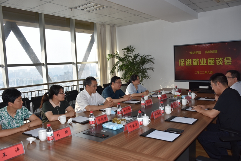 会后,赵光强一行在软件园负责人陪同下,先后走访座谈了我校新建的五家就业实习基地单位:山东桥通天下网络科技有限公司、山东润达信息技术有限公司、潍坊市高新区信息化建设运维有限公司、文思海辉元辉数字科技(潍坊)有限公司、尚德软件股份有限公司,详细了解企业发展、校企合作和毕业生吸纳情况,重点就学生就业实习事宜进行了深入交流。