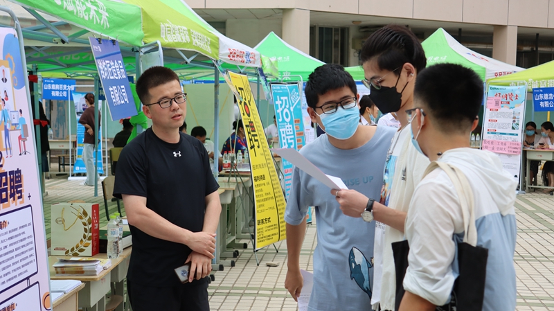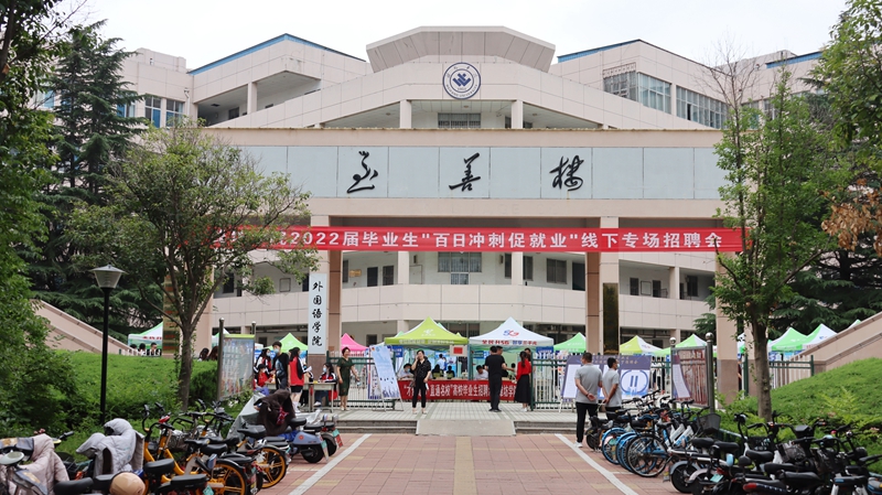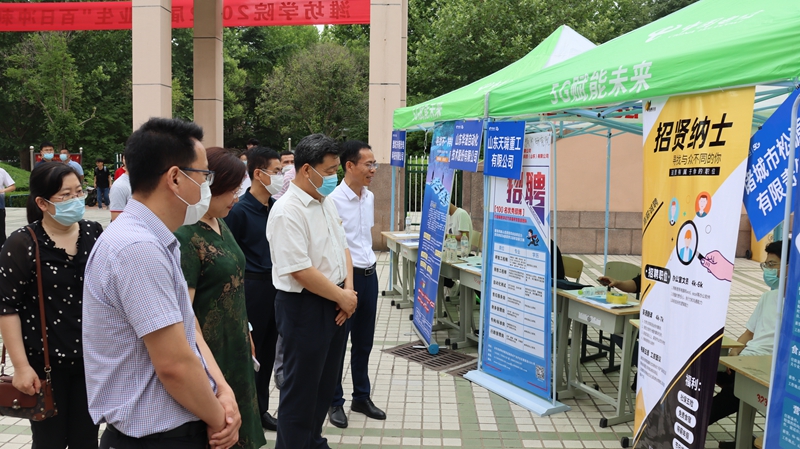 本网讯 为推进学校应用型本科建设、贯彻落实高质量发展精神、切实做好毕业生就业工作,6月4日,由学生工作处主办、外国语学院承办的“潍坊学院2022届毕业生‘百日冲刺促就业’线下专场招聘会”在学校至善楼举行。来自山东各地的五十多家用人单位及潍坊学院近千名应届毕业生参加了本次招聘会。学校党委副书记王清明到现场指导,学生工作处以及外国语学院负责人陪同参加。