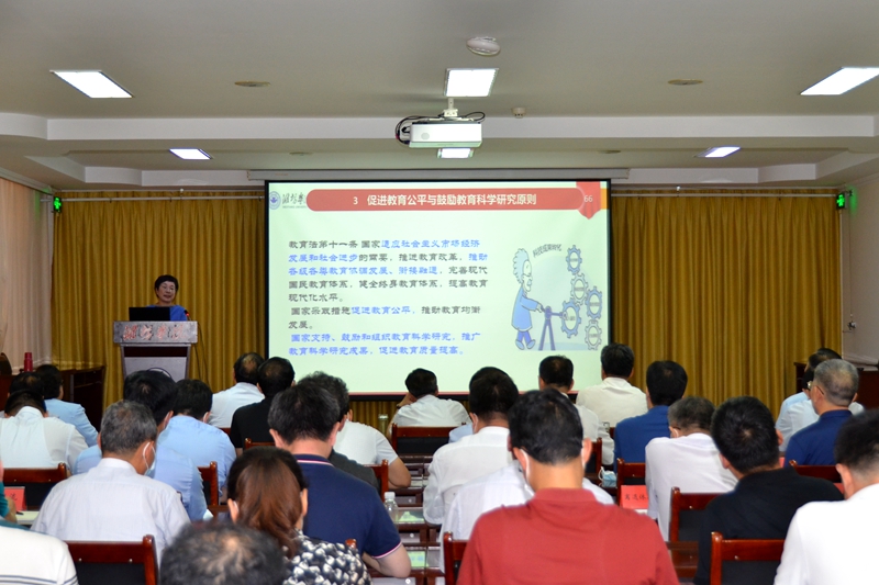 报告会上,张彩云教授从习近平法治思想是全面依法治校的根本遵循和行动指南、教育法新修订的背景及新修订的意义、教育法新修订的主要内容解读、以习近平法治思想为指引全面贯彻落实新修订的教育法等四个方面,对习近平法治思想进行了全面阐释、深入解读。