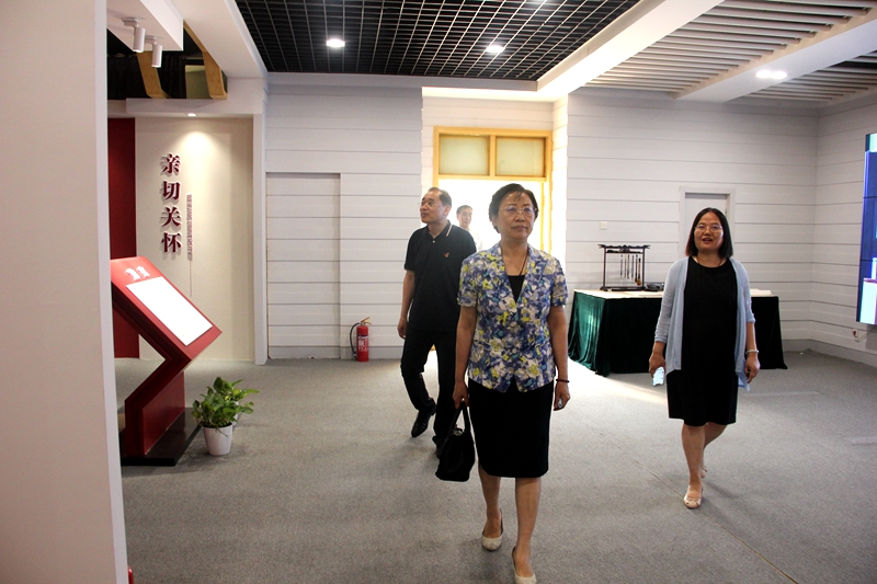 马茜华重点调研了古籍馆,她实地考察古籍书库,详细了解古籍馆藏现状、库房保管条件和当前古籍分类、编目、修补的工作进程,并与工作人员进行交流。她对图书馆古籍整理工作所取得的成绩给予充分肯定,提出古籍馆要“古”起来,从而更好地服务于师生、服务于地方、服务于古籍研究者,并对下一步工作提出了建设性意见。