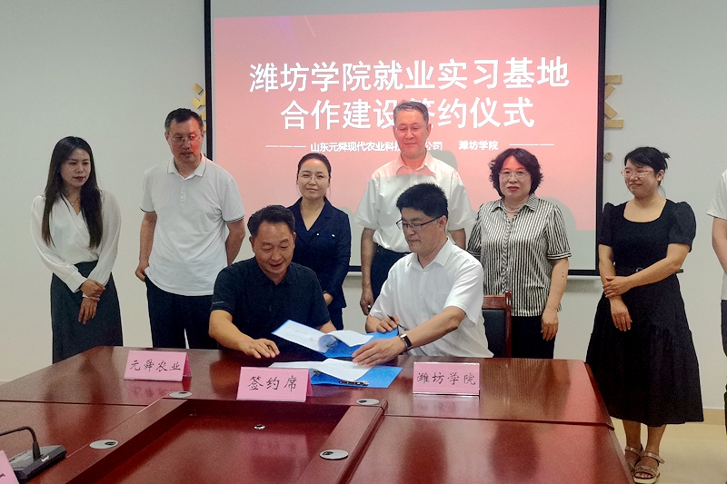 本网讯 6月14日上午,我校种子与设施农业工程学院和山东元舜现代农业科技有限公司在潍坊国家农综区签订就业实习基地建设等一系列合作发展协议并挂牌,就加强战略合作,相互促进,共同发展达成长期合作共识。学校党委委员、副校长赵光强,潍坊国家农综区推进办党组成员、副主任李秀明,滨海区农村管理中心主任高祥,山东元舜现代农业科技有限公司总经理袁方清出席活动,种子与设施农业工程学院党政负责同志参加。