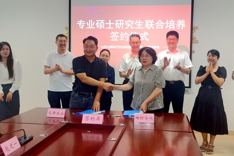 潍坊国家农综区推进办副主任李秀明代表潍坊国家农综区对我校给予的支持和帮助表示感谢。她表示,潍坊学院与山东元舜现代农业科技有限公司的合作,既是企业发展的需要,更是潍坊农综区“对表对标走在前,凝心聚力争一流”的需要;不仅可以促进学校高水平发展,提高企业的科研力量和水平,更能推进滨海区的创新发展,是一项“三赢”的大好事。希望长期合作、真诚合作、有效合作,成为典范、成为标杆、成为一流。