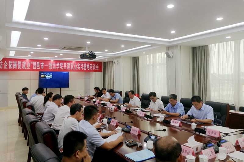 实地走访后,“访企拓岗促就业”昌邑市——潍坊学院共建就业实习基地洽谈会在昌邑经济开发区管委会召开,李玉祥和李东分别致辞。李玉祥对李东一行表示热烈欢迎,介绍了昌邑的基本情况。他表示昌邑是溴盐之乡、丝绸之乡、果木之乡,也是江北唯一的一个华侨之乡,以溴盐资源优势为基础的昌邑经济开发区产业结构以化工、制药为主。李玉祥表达了与潍坊学院在共建产业学院、科技开发、毕业生就业等方面加强合作的愿望。李东在致辞中表示,潍坊学院是潍坊人民自己的大学,立足潍坊、服务地方经济社会发展是潍坊学院天然的使命。李东说,潍坊学院拥有完善的学科门类、比较雄厚的师资力量、办学水平得到社会认可,以“省市共建”签约为标志高水平应用型大学建设、冲击硕士点、拓展办学空间等三件大事进入了新的发展阶段。李东指出,学校已经汇聚了一批人才、有比较明显的智力优势、有能力为地方为企业做一些事情,潍坊学院学科门类优势与昌邑市的发展优势有很好的融合度,有着广阔的合作空间。