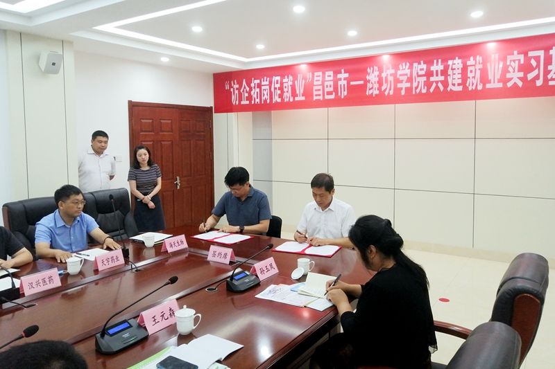 化学化工与环境工程学院党政负责同志分别和与会企业负责人签订就业实习基地建设合作协议。李东为签订就业实习基地建设合作协议的11家企业授“潍坊学院就业实习基地”牌。