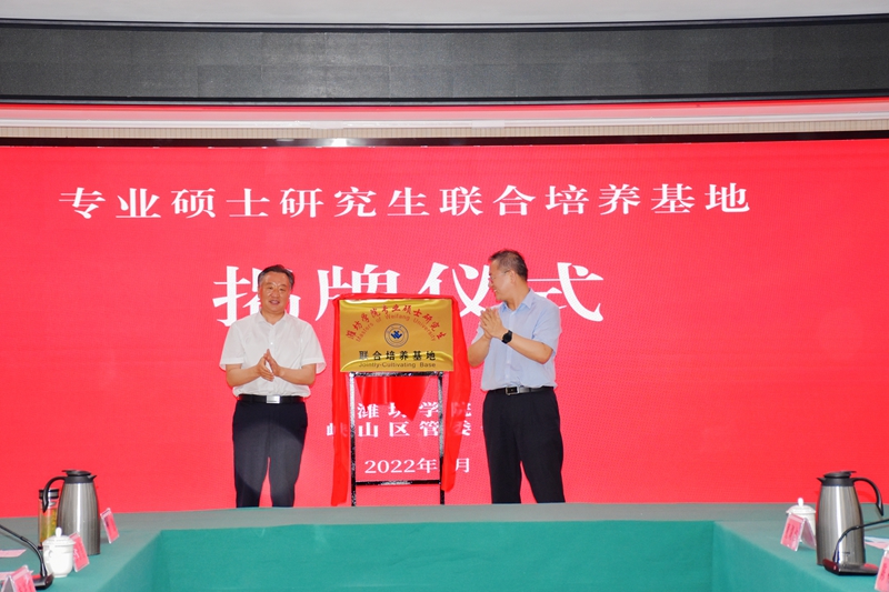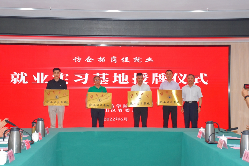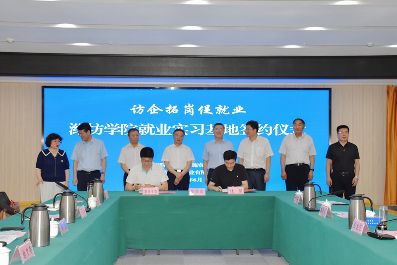 企业代表大艾姜山农业科技有限公司负责人作了校企合作典型发言。科研处主要负责同志与大艾姜山农业科技有限公司代表签约了共建联合研发中心的合作协议。种子与设施农业工程学院党总支负责同志代表学校与企业代表签约就业实习基地。李连成向优渥有机农业有限公司等4家企业代表集中授牌潍坊学院就业实习基地。李东与张龙江共同为校企共建“姜科植物高值化利用研发中心”和“专业硕士研究生联合培养基地”揭牌。