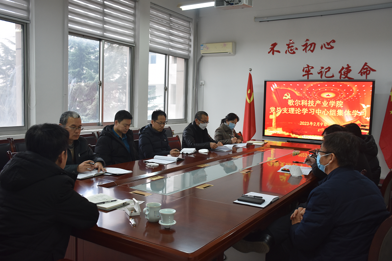 本网讯 2月9日下午,歌尔科技产业学院理论学习中心组举行2023年第一次集中学习会。党总支书记、院长李健主持会议。
