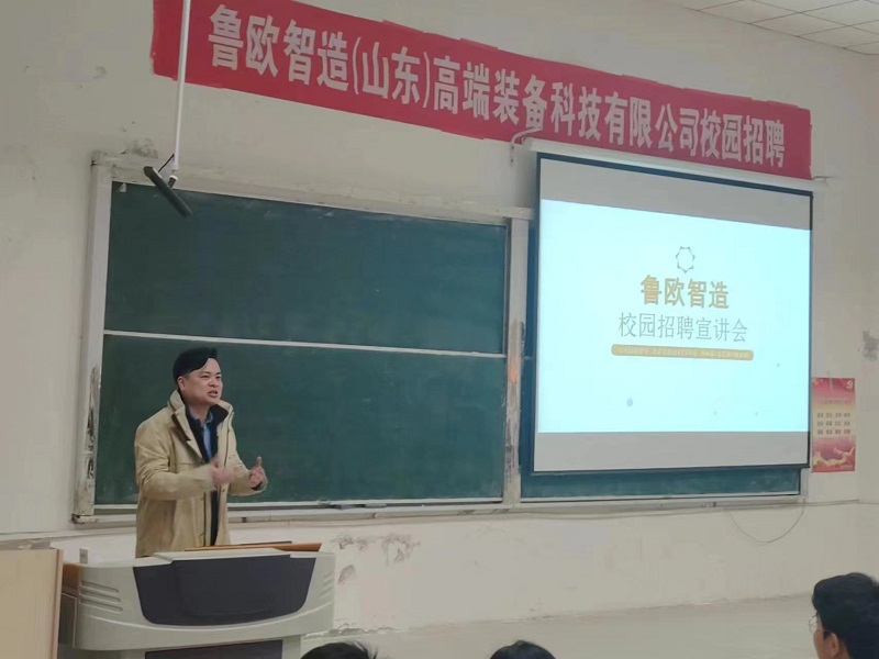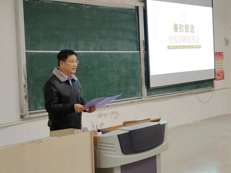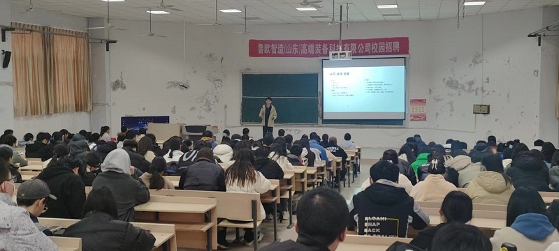 本网讯 2月17日下午,鲁欧智造(山东)高端装备科技有限公司校园招聘宣讲会在明正楼5109室举行。鲁欧智造董事长罗亚非博士等企业高层,物理与电子信息学院党总支副书记于尔河、副院长曹连振、全体辅导员及300余名相关专业学生参会。